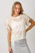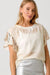Multicolor Sequined Velvet ShirtIridescent and gold sequins on sleevesRuffled short sleevesRound neck-Model is wearing Ivory with 60845 skirt / 60303 skirt-Model wears: S / Model height: 5` 9"