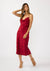 Sophisticated and effortlessly chic, this fall slip dress is crafted from floral woven jacquard for a rich texture and subtle sheen. Sleeveless with delicate spaghetti straps that cross elegantly at the back, it features a softly draped cowl neckline for a graceful touch. The midi-length bottom hem is clean finished, creating a sleek drape and fluid movement with every step.