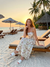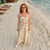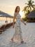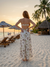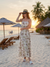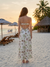 - A maxi dress made with seashell-print fabric, featuring contrast binding details.- Mini length lining insert- Contrast binding detail- Fit and flare maxi dress- Adjustable shoulder strap- Back strap with elasticTurn heads in this effortlessly elegant maxi dress designed with clean lines and modern structure.Featuring a fitted bodice with a square neckline and adjustable spaghetti straps, this dress offers a flattering and supportive silhouette. Ideal for summer gatherings, garden parties, or coastal getaways, this dress blends structure and softness for a timeless yet contemporary statement. Model MeasurementsHeight 5' 7" Bust 32" Waist 25.5" Hips 35.5"The model is wearing a size Small.