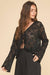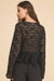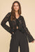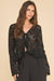 - Long Sleeves Top - Made in USA - Ties on the front - Bell Sleeves - Ruffles on the bottom - Stretch Fabric - Lace - Model is wearing a size S