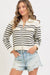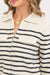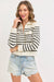 THIS STRIPED ZIPPER FRONT SWEATER KNIT CARDIGAN CRAFTED IN A SOFT SWEATER KNIT. IT FEATURES A CLASSIC COLLAR AND CHEST POCKET WITH FLAPS. THIS SWEATER IS YOUR GO-TO FOR EFFORTLESSLY LAYERING PIECE. *DETAIL* -RELAXED FIT -ZIPPER FRONT CLOSURE -HORIZONTAL STRIPES -CLASSIC COLLAR -LONG SLEEVES WITH RIBBED CUFFS -CHEST POCKETS WITH FLAPS -SOFT, COZY SWEATER KNIT FABRICĀ