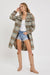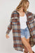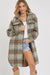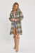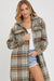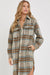 THIS EFFORTLESS CLASSIC PLAID SILHOUETTE LONG SHACKET IS PERFECT FOR LAYERING UP THIS FALL/WINTER. TEXTURED BRUSHED FABRICATION. THIS LONG PLAID SHACKET/COAT CAN BE DRESSED UP AND DOWN, MAKING IT SUITABLE FOR VARIOUS OCCASIONS. PAIR IT WITH JEANS, A SWEATER, AND ANKLE BOOTS FOR CASUAL YET CHIC LOOK. FOR A MORE FORMAL ENSEMBLE, WEAR IT OVER A DRESS OR TAILORED PANTS AND HEELS. *DETAIL* -RELAXED FIT -FRONT BUTTON CLOSURE -CHEST POCKETS WITH FLAP -WELT FRONT POCKETS -BOTTOM ROUND HEM LINE -LONG SLEEVE WITH BUTTONS AT CUFFS -PLAID COAT/OUTERWEAR -